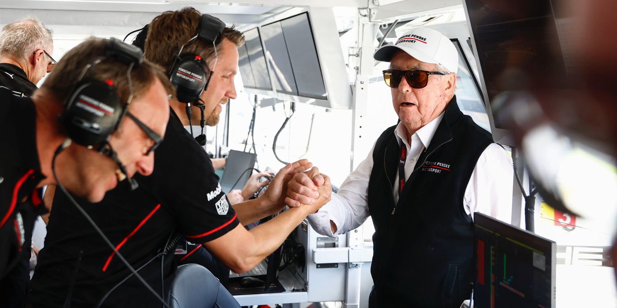 Photo caption: SCCA Hall of Famer and motorsports legend Roger Penske (right) celebrates after his team won the Rolex 24 At Daytona in January 2026.